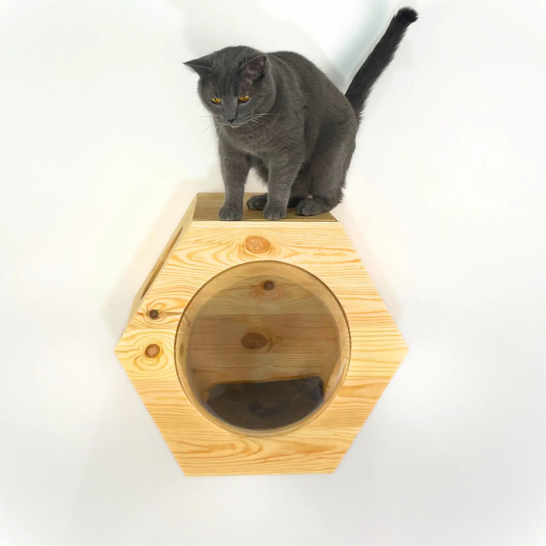 Cet arbre à chat mural en bois est conçu pour s’adapter aux besoins de tous les chats, qu’ils soient joueurs, explorateurs ou adeptes des longues siestes en hauteur. Grâce à son hublot transparent, il offre une vue panoramique qui stimule la curiosité des chats et enrichit leur environnement.